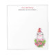 Ein Notizblock mit einem niedlichen und weich gestalteten Design mit einem anmutigen Pinguin, der eine rote Weihnachtsmannmütze trägt. Stehend hinter einem Strauß von Blume mit rosa und weiß gestreiften Bonbons.