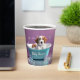 Niedlicher Welpe in einer Badewanne mit Seifenblas Pappbecher