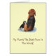 Dieser niedliche Welpe-Beagle, der an seine Mumie knuddelt, ist so liebenswert, der Blick in den Welpen ist unwiderstehlich, er hat so viel Vertrauen und Liebe für seine Mutter. Unmittelbar unterhalb des niedlichen Welpenbildes habe ich die Worte "My Mum's The Best Mum In The World!" hinzugefügt, weil ich sicher bin, dass das der kleine Beagle über seine Dotiermaus nachdenkt. Dieses bezaubernde Welpengemälde sieht auf dieser leeren Grußkarte großartig aus, ich bin sicher, dass jeder, der einem niedlichen Babybild nicht widerstehen kann, Liebe haben wird, diese Karte an diesen besonderen Tagen, dem Muttertag, Geburtstag usw. zu erhalten. Aber es muss kein besondere Anlass sein, um jemandem lassen, der weiß, wie wichtig es dir ist, vielleicht will du ihnen einfach eine oder zwei Zeilen zu geben. Die Karte ist leer, damit Sie Ihre eigene Nachricht hinzufügen können. Diese Karte ist für jeden zugänglich. Das Originalportrait des Hundes ist in Aquarellfarben gemalt. Wenn Sie ein Porträt für sich selbst oder als Geschenk für jemanden in Auftrag geben möchten, zögern Sie bitte nicht, mir für weitere Details eine E-Mail zu schicken. Ich freue mich darauf, Sie zu "chatten":)