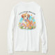 Ein langärmeliger T - Shirt mit einem Bild eines niedlichen Welpen, der zwischen den Blume sitzt. Er sieht sehr glücklich aus, von Blume und Schmetterlingen umgeben zu sein. Das perfekte Geschenk für diejenigen, die Hunde Liebe Welpen. Der Slogan lautet "Kleine Pfoten, Große Liebe". Enthält generativen Inhalt.