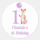 Niedlicher Whimsical Fox & Balloon Lila 1. Geburts Runder Aufkleber