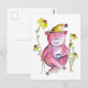 Niedlicher Whimsical Pig Drink Kaffee Postkarte