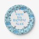 Niedliche Krebstiere Junge Happy Birthday Paper Plate. Dieses Design kommt mit niedlichen blauen Meerestieren zeichnend. Personalisieren Sie den Teller mit Ihrem Namen.