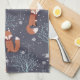 Adorable Füchse mit roten Kappen und Schals verfärben sich in einem schneebedeckten Wald vor dem Hintergrund von Kohle.