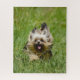 Niedliche Yorkie liefen glücklich durch das große Gras.