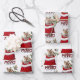 Das wiederholte Muster auf diesen Weihnachtsblättern ist ein Bild eines bezaubernden Yorkshire Terrier Hundes, der aus einer rot-weißen Weihnachtsgeschenktüte herausguckt. Hinter ihm steht ein Gezeter aus heiligen und roten Beeren. Stilisierter, roter und schwarzer Büffel karierter Text sagt MERRY CHRISTMAS". Der Hintergrund auf zwei der Blätter in diesem Set ist weiß, während das dritte Blatt silber ist.