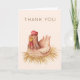 Niedlich danke, dass du eine Karte mit einem Huhn in ihrem Nest hast. Das Gefühl lautet "Danke", aber es kann für Ihre Bedürfnisse angepasst werden. Das Originalbild wurde von Patricia Alvarez gemacht.