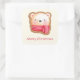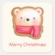 Niedliches Bärengesicht in einem Roten Scarf Weihn Quadratischer Aufkleber