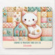Niedliches Patchwork / Quilt Stil Mouse Pad mit einem niedlichen Katz und Haus in einem schönen Vintagen Stil und Pastellfarben. Kate Eden Art