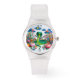 Große, grüne Schlange, umgeben von Bäumen und schönen Wolken im Origami-Stil (Modell n°4). Design auf Frau und Mädchen Uhr mit jungen Stilnummern. Matching Grußkarte, Urlaub Postkarte, Aufkleber bald. Ideal für Chinesisches Neujahr der Schlange 2025 oder Geburtstag (Menschen geboren in Schlange Jahr).