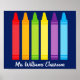 Eine wunderschöne Lehrer-Wertungswoche oder Jahresende-Geschenk für einen Kindergartner, der seinem Grundschullehrer etwas geben soll. Maßgeschneidert mit einem Namen unter dem niedlichen Regenbogen von Stiften. Ein bezauberndes blaues Plakat für einen Vorschullehrer, der sein Klassenzimmer einrichtet.