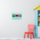 Peace Liebe Paint Poster mit einem hübschen Friedenszeichen, rotem Herz und einer niedlichen Kunstpalette. Ein wunderschönes türkisfarbenes Bild, um sich in einem Kinderspielzimmer oder einem Künstlerstudio aufzuhalten. Passen Sie Ihren eigenen Text an.