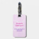Ein Gepäckanhänger mit einem skurrilen zeichn eines coolen und funky rosa Kubus, das eine lila Mähne und Geschichte hat. Diese niedliche Kreatur trägt eine herzförmige Sonnenbrille und ist mit kleinen Sternen dekoriert. Rosa Aquarelluntergrund.