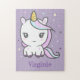 Ein lila Puzzle mit einem niedlichen Einhorn in Pastellfarbe und einem anpassbaren Vornamen: eine nette Geschenkidee für ein Teenager, das Kawaii-Fantasietiere Liebe!
