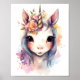 Niedliches Einhorn mit farbenfrohen Blume Poster