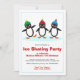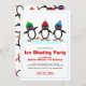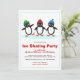 Drei niedliche Penguins in den woolen Kappen von Primärfarben sind der Beleg, der herum in diese themed Geburtstags-Party Einladung des hellen und glücklichen Eis-Skaten schiebt. Auf der Rückseite schieben eine Collage der lustigen Pinguine herum auch!