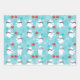 Ein Trio aus Geschenkpackungen, jedes mit einem anderen Design, ist ideal für Ihr Blau. Rot und Weiß Winter Wunderland Weihnachtsthema. Das erste Blatt hat kleine weiße Polka-Punkte auf einem hübschen blauen Hintergrund. der zweite hat einen Mami und einen kindereitigen Eisbären, der sich gegenüber dem anderen Set gegen ein Blau sitzt; Rot-weiß gestreifter Hintergrund und der letzte hat zwei verschiedene weiße Bären, die Schals tragen, umgeben von hübschen weißen und blauen Schneeflocken.