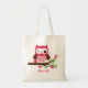 Niedliche Eule sitzt auf einem Zweig des Baumes. Niedliches, hellrosa Blumenmuster im Hintergrund. Einige Elemente von Cherry Clipart.