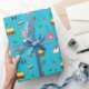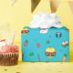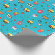 Niedliches, farbenfrohes Lebensmittelmuster auf bl Geschenkpapier