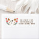 Ein bezaubernder, herbstlicher Kranz aus braunen und kleinen, rot gekappten Pilzen und farbenfrohen Blätter. Sie grenzen an ein anpassbares Monogramm Initial, links und rechts. Fügen Sie also Ihren Namen und Ihre Adresse hinzu, und beginnen Sie vor dem Kauf.