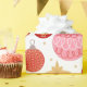 Dieses niedliche Weihnachtsgeschenk-Wraps hat ein Retro-Ambiente mit einem schlichten, weißen Hintergrund. Dieses bunte Muster zeigt Weihnachtsschmuck, Goldsterne, Polka-Punkte und Glocken in den Farben Gold, Rosa und Rot.