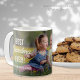 Niedliches Foto Beste Oma Kaffee Tasse. Personalisieren Sie diese maßgeschneiderte Tasse für ein preiswertes Geschenk für jede Großmutter am Muttertag, Großelterntag oder für ein lustiges Oma Geburtstagsgeschenk! Ändern Sie die Farben, indem Sie auf "Personalisieren" klicken und dann auf "Bearbeiten mit dem Designwerkzeug".