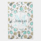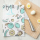 Küchentücher mit niedlichem Obstmuster Linie zeichnend Stil. Hellgrüne und gelbe Farben. Ein lustiges sommerliches Design. Ein weißer Kreis überlagert mit Ihrem Namen und einem Monogramm, das sich im Inneren befindet.