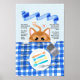 Dieses Poster hat eine niedliche Katzenillustrierung als ein tolles Geschenk für jemanden, der Liebe oder Katze hat. Das ist das Rezept für ein katzensicheres Frühstück. Mit einer orangefarbenen Katze mit einem blauen Gingham-Tischtuch. Eine niedliche und lustige Illustration.