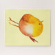 Niedliche Aquarellvogel Original-Kunstillustrierung. Whimsical farbenfrohe gelbe Vogelkunst.