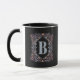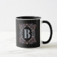 Moderne Niedliche Verzierte Monogram Moderne Damasketmuster Gerahmt Alphabet Letter B. Adorable Abgeschiedene Bluish Gray Buchstaben B befindet sich in einem dekorierten, fröhlichen, blumengeschmückten Rahmen. Ideal für Hochzeit, Verlobung, Geburtstage und Geburtstage