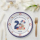 Nautische Teller zum Geburtstag mit einer großen Zahl, niedlicher Hippo-Segler und Ballons. Navy Blue Edge. Ideal für einen kleinen Jungen Sommer Geburtstag. Personalisieren Sie den Text einfach mit der Nummer des Geburtstages. Kate Eden Art