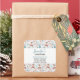 Business Aufkleber mit einem bezaubernden Weihnachtsmuster. Niedlicher Winterhirsch mit Geweih, der um einen Wald von Bäumen und Gräsern herumprangt.