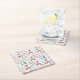Papier Untersetzer mit einem bezaubernden Weihnachtsmuster. Niedlicher Winterhirsch mit Geweih, der um einen Wald von Bäumen und Gräsern herumprangt.