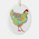 Weihnachts Weihnachtsgebäck in Quirky Feierliche Elf Hut. Die farbenfrohe Farm Hen festliche Weihnachtsbaumdekoration, die die Urlaubssaison aufhellen soll, und das ideale Geschenk für die Familie und Freunde, die Tiere und Hühner lieben. Diese trendige Henne in lebhaftem Grün, Gelb, Orange, lila, Aqua und mit einer niedlichen Rot-Creme-Weihnachtsmannmütze lustige festliche Baum-Dekoration. Henne aus Quirky von der Künstlerin Catherine Sweetman