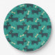 Niedliches Hundsmuster mit Knochen auf grünem Hint Pappteller