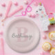 Niedliches individuell anpassbares rosafarbenes Mo Pappteller