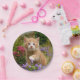 Niedliches Ingwerkätzchen in einem Garten Pappteller