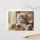 Niedliches Kätzchen mit Perlen in einer Schmuckbox Postkarte