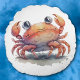 Ein rundes Kissen mit Aquarellbild einer sehr niedlichen Krabbe.