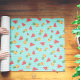 Gemusterte Yoga-Matte aus tropischen Früchten mit einem Allover-Muster, das Ananas und Wassermelonen auf türkisfarbenem Hintergrund lächelt. Ein sonderbares und niedliches Design für jeden, der den Kawaii-Stil Liebe.