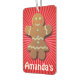 Passen Sie diese lächelnde Lebkuchenfrau mit einem lustigen Party-Kleid an! Ändern Sie die Namen, spielen Sie mit dem Bild oder mit dem Schriftart und den Farben auf jeder Seite. Mit einem niedlichen und originellen Autofrischer präsentieren Sie Ihren Weihnachtsgeist jedem.