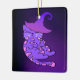 Niedliches Lila Kitten mit Hexenhut Keramikornament