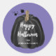 Personalisiertes Niedliches Lila Script Pumpkin Happy Halloween Classic Round Sticker.