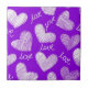 Niedliches Lila White Scribbled Herz mit Liebe Scr Fliese