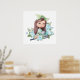 Niedliches Mädchen mit grauer Katzenjammer Blume P Poster