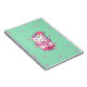 Dieses Design zeigt ein niedliches Einhorn mit bunten Haaren, die in einem süßen Kuchen sitzen, umgeben von rosa Herzen und Glück