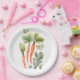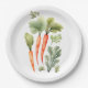 Diese niedlichen Aquarellpapier-Teller mit einem Essmuster mit orangefarbenen Karotten und grünen Blätter sind perfekt für gesunde Ernährung | Osterveganes Party!