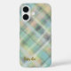 Niedliches Monogramm-Skript kariert aquamarin-gelb iPhone 16 Hülle