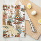 Niedliche personalisierte Küchenhandtücher mit magischen Illustrationen von kleinen Hütten, die auf niedlichen Pilzen in Rot und Pfirsichfarben stehen und von Schmetterlingen, Blume und Grünpflanzen umgeben sind.