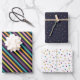 Niedlich, Polka und Streifen Umhüllungspapier mit schwarz und regenbogenfarben. Ideal für ein Geburtstagsgeschenk für Jungen und Mädchen.